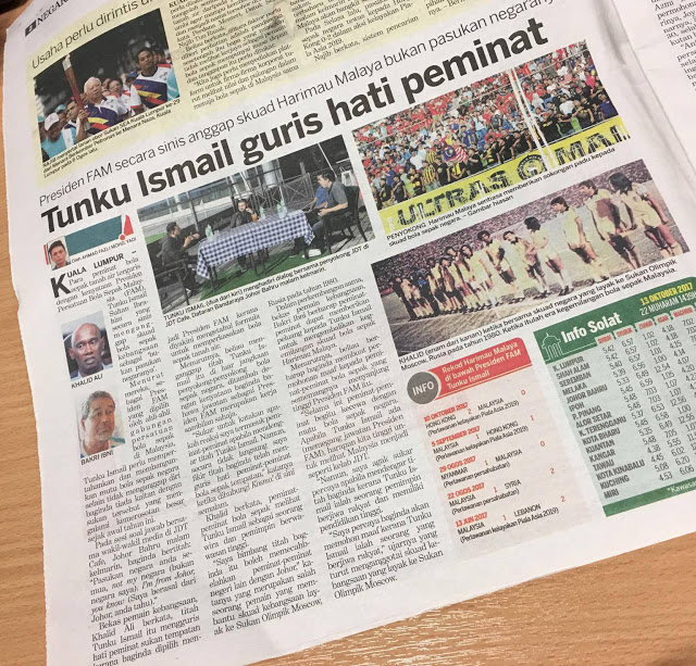 sebuah akhbar tempatan yang mendakwa Presiden FAM guris hati peminat bola