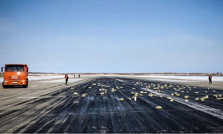 MOSCOW – Landasan sebuah lapangan terbang di Rusia dipenuhi