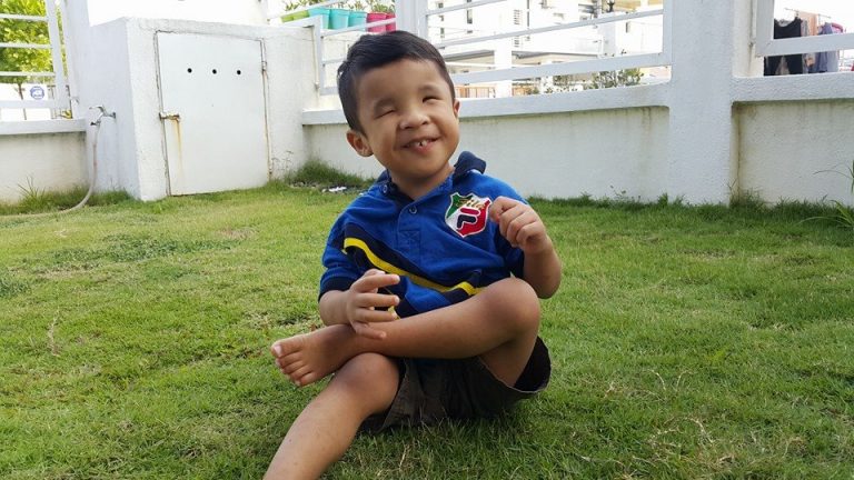 Tidak dapat melihat sejak dilahirkan namun telatah dan senyuman anak kecil ini mampu memberi kebahagiaan kepada ibu bapa serta seluruh keluarganya.