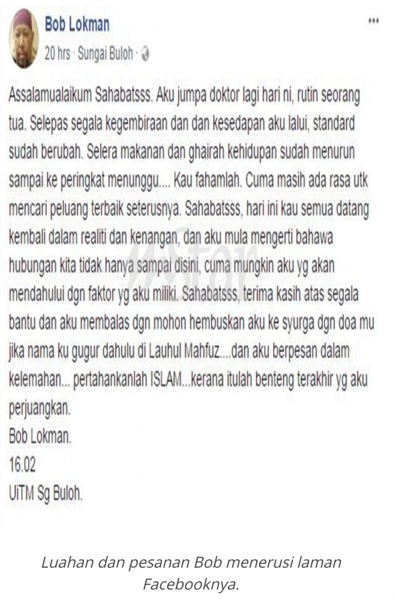 Bob atau atau Mohd Hakim Lokman, 54, menerusi laman
