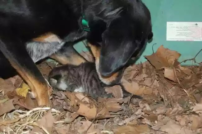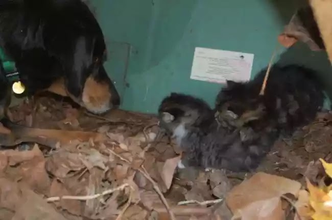 Anjing ini seperti mahu melindungi anak-anak kucing comel ini