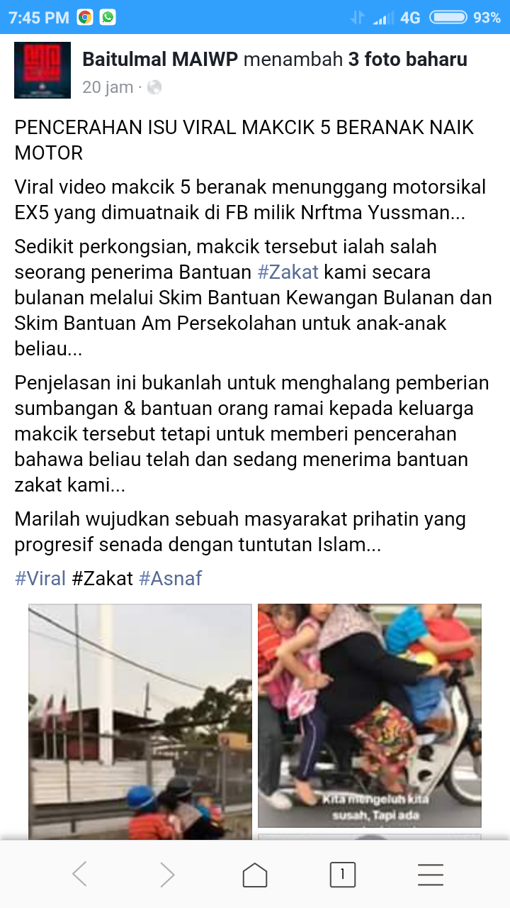 Sementara itu, Baitulmal Majlis Agama Islam Wilayah Persekutuan (MAIWP) mengambil maklum mengenai video tular tersebut dan menjelaskan bahawa, wanita berkenaan merupakan salah seorang penerima bantuan zakat.