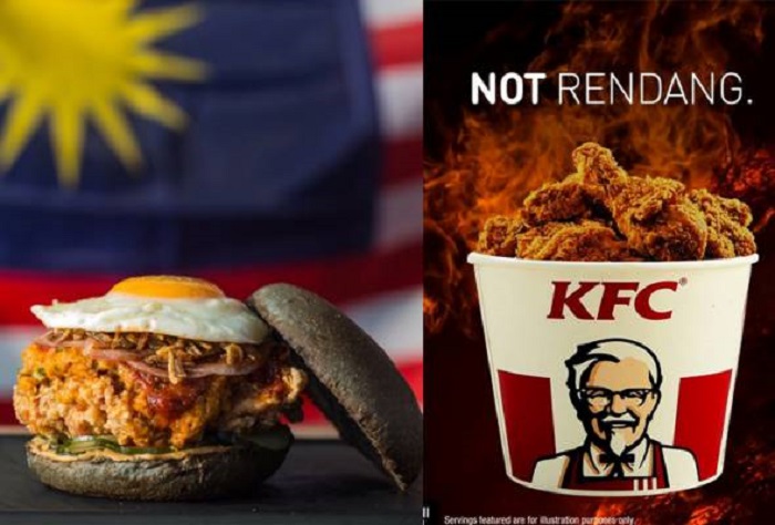 Antaranya KFC Malaysia menerusi Facebooknya memuat naik sekeping gambar tertera ‘bukan rendang’ merujuk kepada ayam gorengnya yang rangup tidak harus dikelirukan dengan rendang.