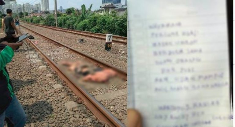 dengan keadaan badan hampir hancur dan ketika di periksa terdapat sekeping nota