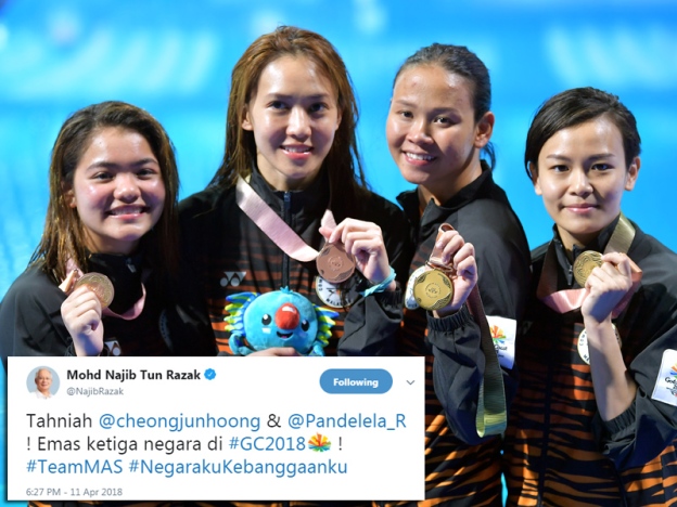@Pandelela_R ! Emas ketiga negara di #GC2018 ! #TeamMAS #NegarakuKebanggaanku,”