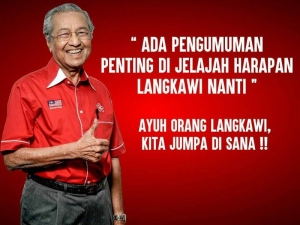 Mahathir berkata, beberapa pengumuman penting akan dibuat pada program Jelajah Harapan Langkawi, berdekatan Padang Mat Sirat, pada malam tersebut.