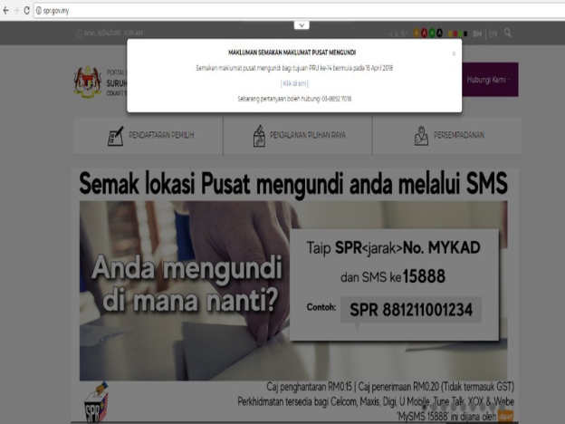 Pilihan Raya (SPR) di www.spr.gov.my, aplikasi mudah alih MySPR Semak yang