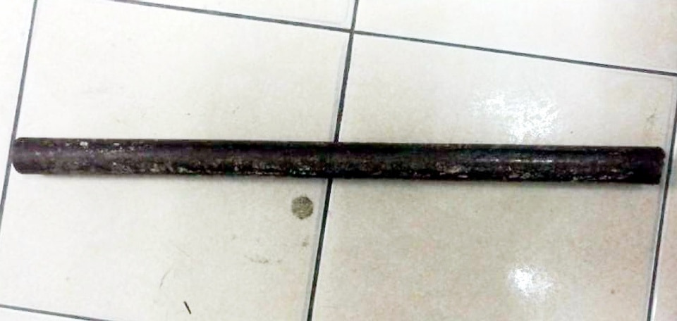 PAIP besi yang digunakan memukul seorang lelaki dalam kejadian di terminal bas Kalansanan, Inanam. – Foto ihsan pembaca