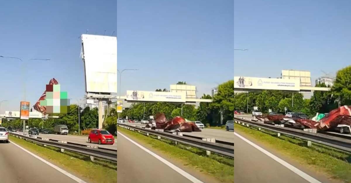 • Kain dipercayai tercabut dari struktur papan iklan besar di tepi lebuh raya