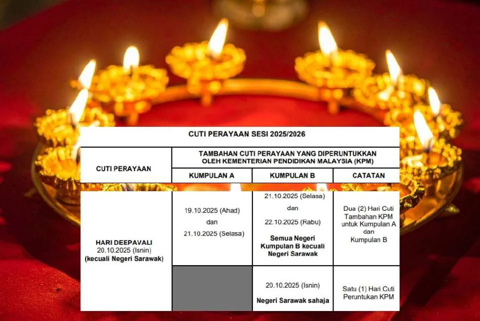 KUALA LUMPUR – Berita gembira buat warga pendidik dan pelajar! Kementerian Pendidikan Malaysia (KPM) mengumumkan pemberian cuti tambahan sempena sambutan perayaan Deepavali yang akan diraikan pada Isnin, 20 Oktober 2025.