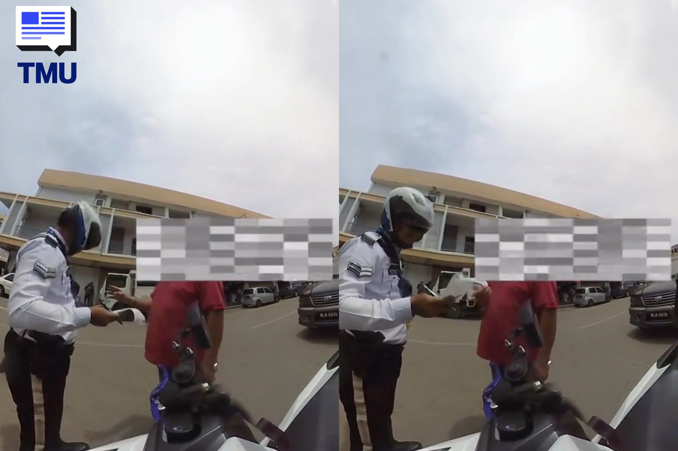 “Sekarang ini saya tahan kamu, jangan tengok orang lain. Saya tegur kamu, bila masuk simpang bagi signal saja,” ujar anggota polis trafik tersebut dengan nada tenang.