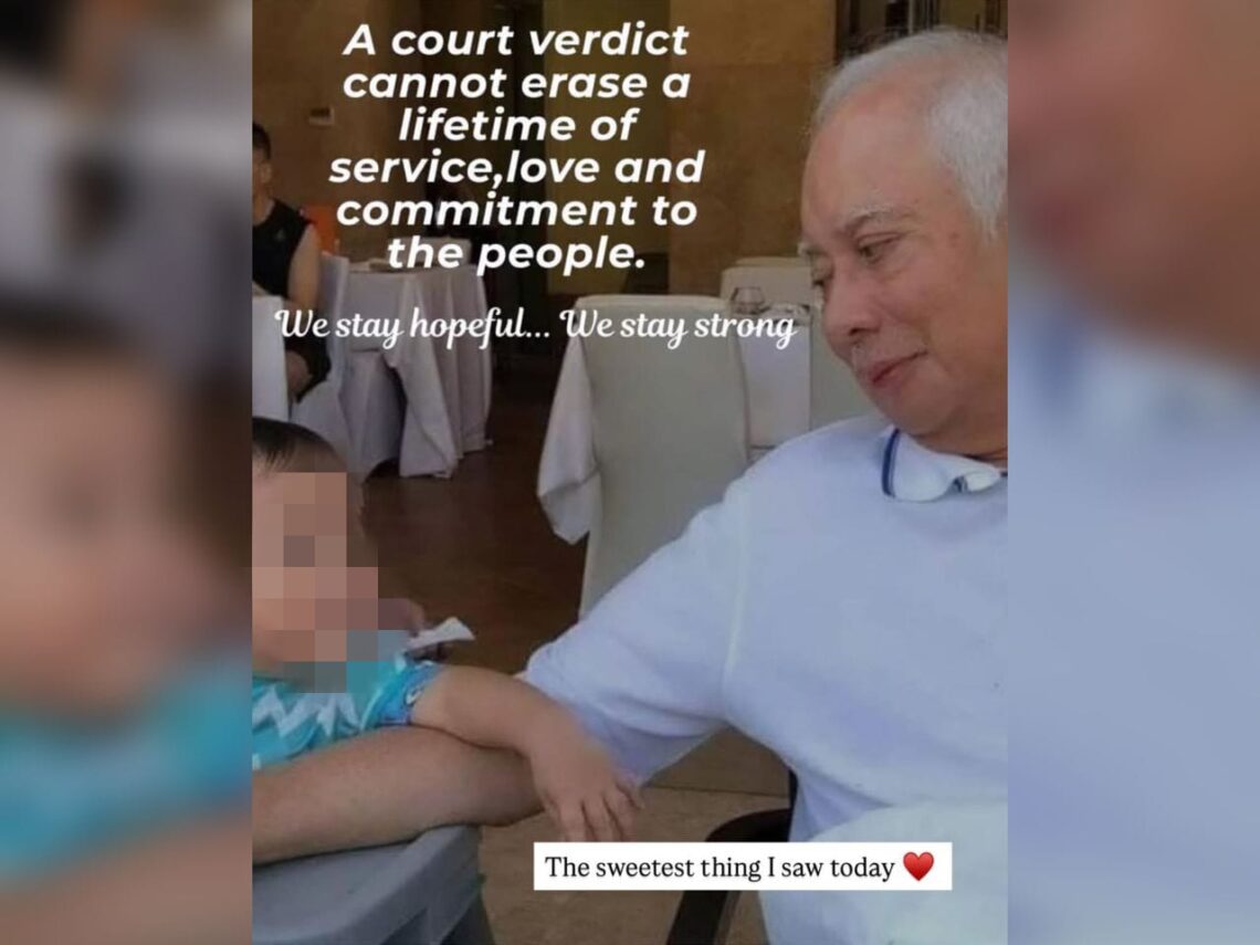 Dalam perkongsian sama, Yana turut memuat naik gambar Najib yang sedang memandang ke arah cucunya, disifatkan sebagai satu detik yang cukup manis buat dirinya.